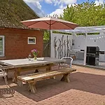 Die 2-Zimmer- Reetdachhaus De Ole Kaat verfügt über Parkplätze und eine Terrasse mit Aussicht auf den Garten.